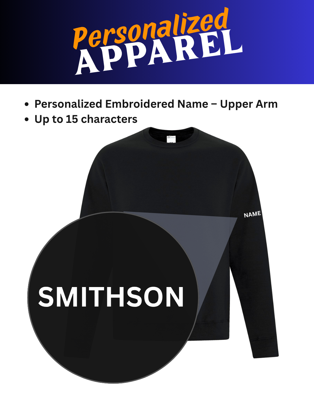 - Optional Custom Name Embroidery on Upper Sleeve (Last Name or Initials)